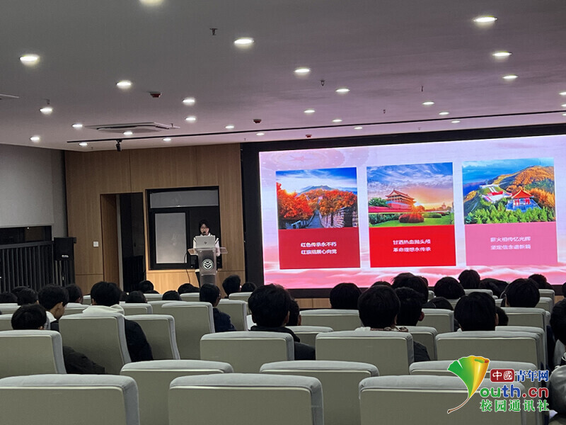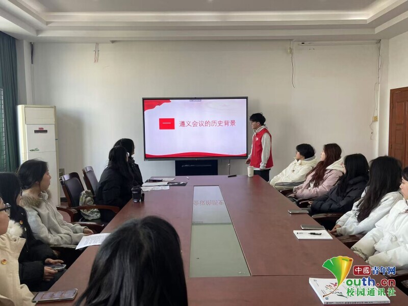 图为宣讲队员在宁职院同学倾听遵义会议的历史背景。