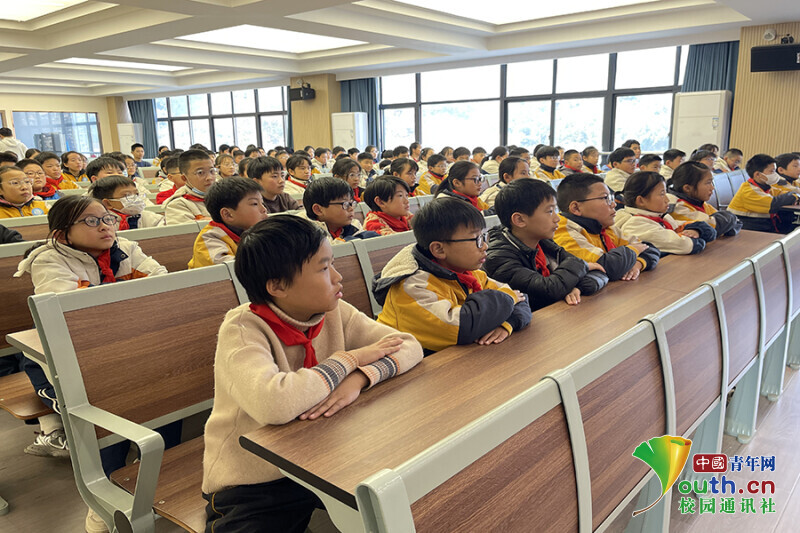 图为知行小学学生倾听遵义会议英雄故事。