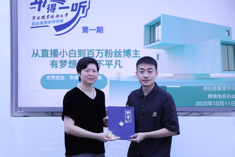 此次讲座为有创业或主播从业意向的学生搭建了学习平台,实现了校友资源与在校学子成长需求的精准对接。宁波职业技术大学供应链管理学院将持续发挥优秀校友的示范引领作用,为学生职业发展与创业实践提供有力支持。