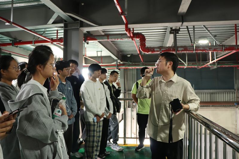 徐自跃老师结合现场场景展开教学,指着高耸的货架向同学们讲解:“大家对比传统平面仓就能发现,立体仓通过向上延伸空间、分层规划货位,既能节省地面占地,又能通过智能调度让每个货位高效利用,很好地解决了‘存储容量不足’的行业痛点。”生动的现场解读让抽象的仓储知识变得具象,同学们纷纷驻足观察、认真记录,沉浸式感受智能仓储的运作逻辑。