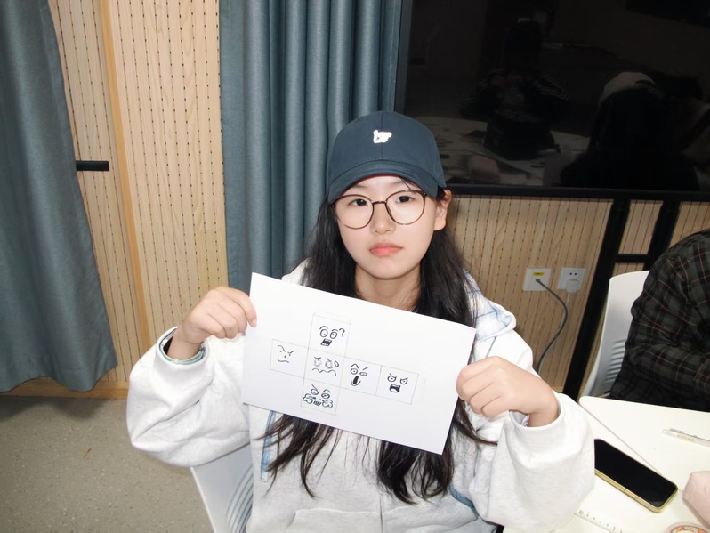 创作之余,同学们以情绪骰子为媒介开展互动,通过“掷骰谈情绪”的形式,分享情绪故事、交流调节方法,在互动中打破社交壁垒,实现情绪表达的自然化、轻松化。