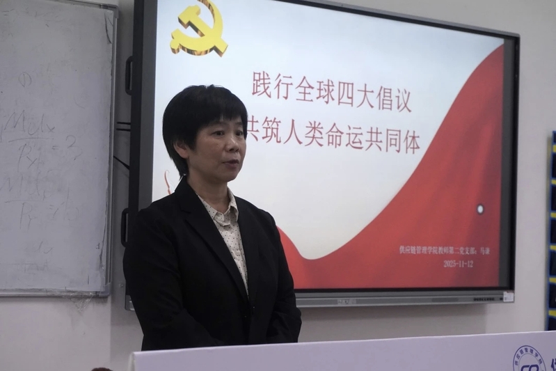 为深化入党积极分子对全球治理中国方案的理解,引导青年立足专业践行时代担当,2025年11月12日,供应链管理学院(余姚校区)党员教师马谦在4315教室开展以“践行全球四大倡议,共筑人类命运共同体”为主题的专题党课。