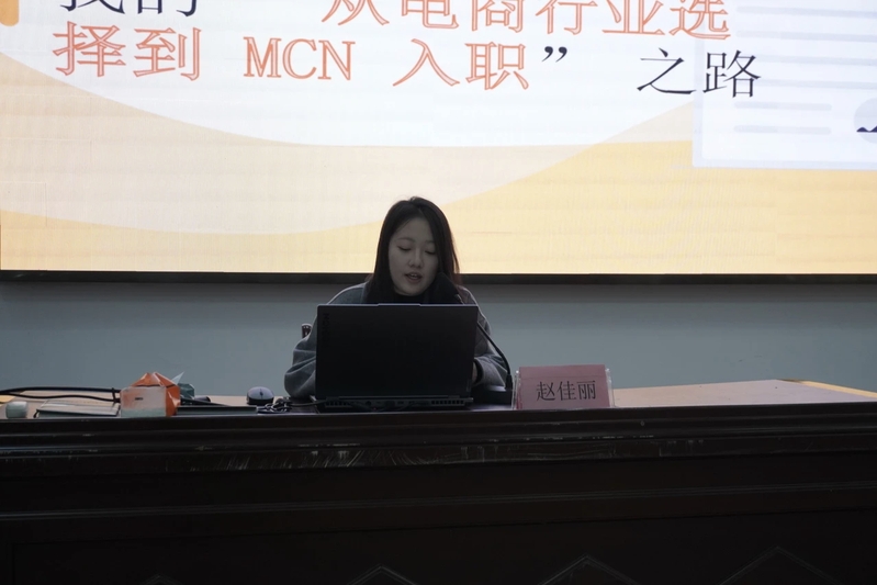讲座中,赵佳丽结合自身从校园到MCN机构的完整求职与从业经历,从职业方向选择、面试实战技巧、岗位能力提升和心态调整四个维度展开分享。在职业方向规划上,她强调精准定位的重要性,分享了自己聚焦电商行业,将拍摄剪辑岗列为首选、运营岗为次选、带货直播岗为备选的岗位优先级排序逻辑,建议学弟学妹提前明确职业诉求,避免盲目海投。她还提到自己求职初期便高效规划,三天内完成八场面试,通过对比薪资、休假制度和公司氛围等核心条件,最终做出最优职业选择。