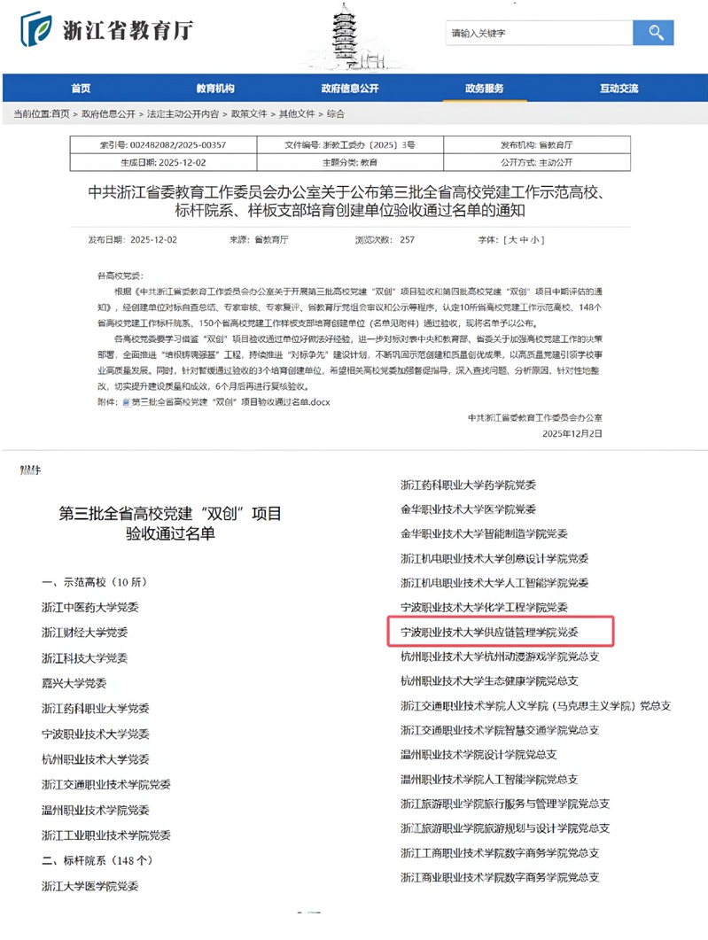 近日,浙江省教育厅公布了第三批全省高校党建“双创”项目验收通过名单,供应链管理学院党委经过2年培育创建,以扎实的建设成效顺利通过验收。