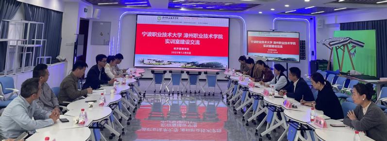 2025年12月8日,宁波职业技术大学教务处张启明处长、供应链管理学院赵莺燕院长带领教授、博士一行9人赴漳州职业技术学院经济管理学院,就实训室建设进行深入的参观调研和交流学习,分别与漳州职业技术学院教务处徐镇辉处长、经济管理学院邱文龙院长及有关部门负责人进行深入交流和座谈。