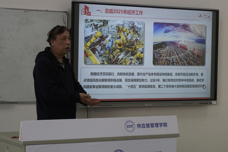 最后,韩剑鸣老师重点解读了2026年经济工作的八项重点任务,他强调,这些任务为青年学子指明了未来在经济建设领域的努力方向和责任担当。他鼓励同学们主动关注国家经济发展动态,将个人成长与国家发展紧密结合,在日常学习生活中锤炼专业本领、提升综合素养,以实际行动践行新时代青年的使命,在助力国家经济高质量发展的浪潮中勇立潮头,为民族复兴贡献智慧与力量。