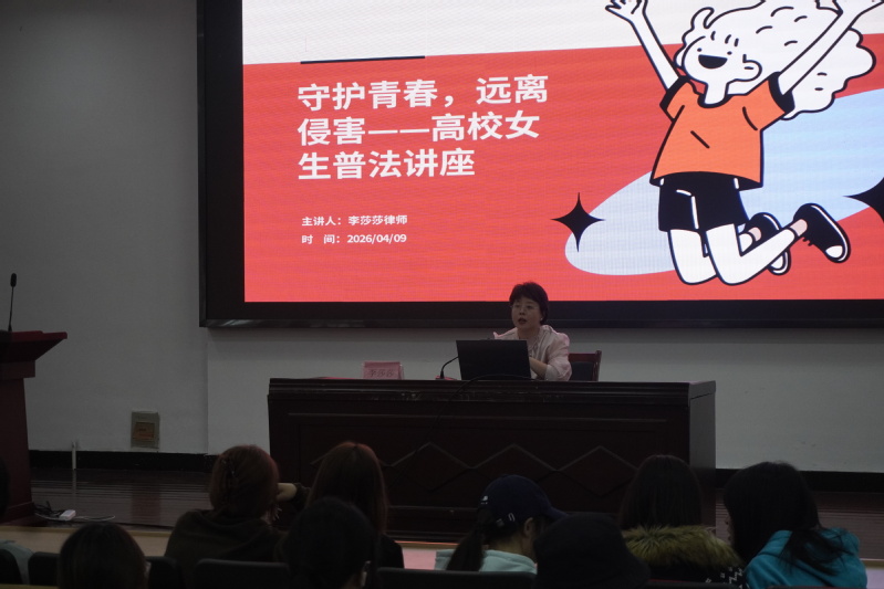 2026年4月9日,供应链管理学院(余姚校区)举办“守护青春,远离侵害”高校女生安全普法讲座。本次讲座特邀浙江合创(余姚)律师事务所执行主任、高级合伙人李莎莎律师主讲,旨在强化安全教育,提升女生自我保护意识与法律素养,引导学生认清侵害风险、掌握维权途径,以法治力量守护校园女生健康成长。